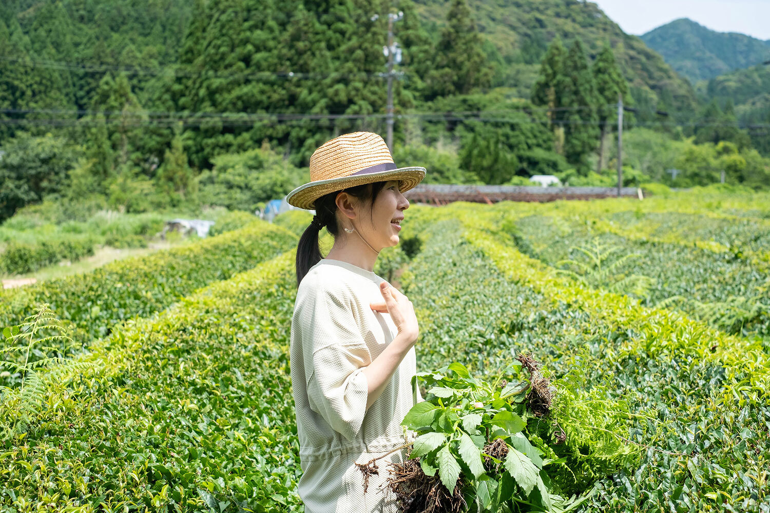 石塚:父はここで育ちましたが、独立して別の場所で私は育ったので、あんまり知らないかな。父の知り合いというか、父の近所の人たちですよね。私からすれば、身近な友達もいなければ同級生もいないし、知り合い的な人は本当に近所に顔を少し知っている人がいるぐらいで。だけど私がお茶畑をやることを、みんなに受け入れてもらっているし、教えてくれますよ。うちは「草生栽培」ってやり方をしていて、これはほかと違うやり方なんですよ。本当だったら「草を生やさないで」とか「混ぜないで」とか思っていると思うんだけど、そういうやり方も受け入れてくれている。こうしなきゃならないというところをやらせようとはしなくて、私のやり方を認めてくれているのがありがたいなって思ってます。